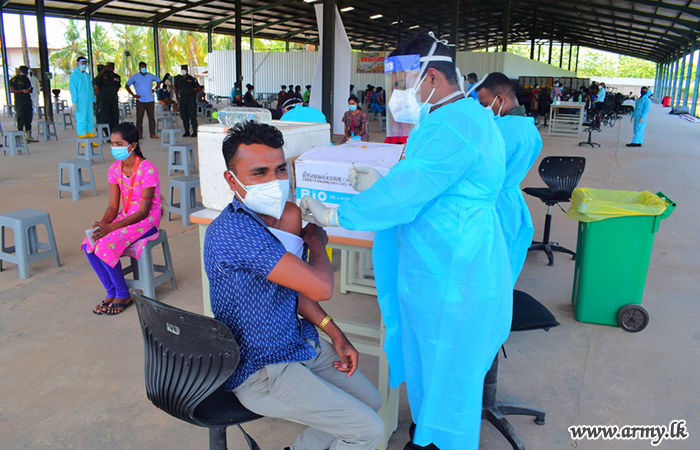The island-wide COVID-19 vaccination programme of the Army, launched with the blessings of HE the President under the directions of General Shavendra Silva, Head of the National Operation Centre for Prevention of COVID-19 Outbreak, Chief of Defence Staff and Commander of the Army covered Batticaloa district on Saturday (28) under the supervision of the Major General Nalin Koswatta, General Officer Commanding, 23 Division and Colonel Dilupa Bandara, Commander 231 Brigade.