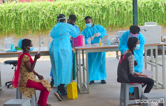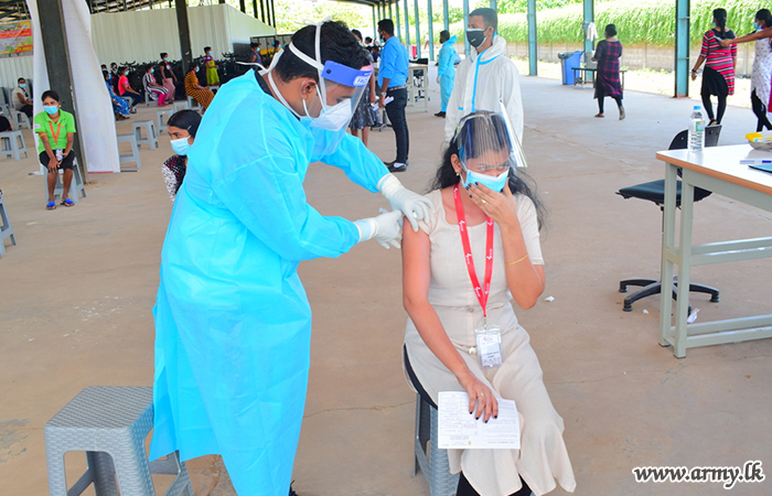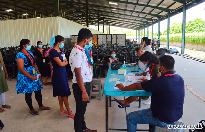During the programme, 400 employees in the Brandix Apparel Solution Limited, Ariyampathy received the second dose of ‘Sinopharm’ vaccine under the close supervision of a medical team of the Sri Lanka Army Medical Corps, supported by 11(V) Sri Lanka Sinha Regiment troops. The project would continue prioritizing the inoculation of people above 60 years of age as instructed by HE the President.
