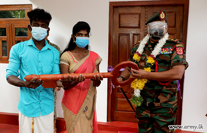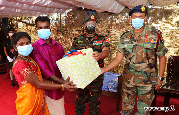 Commander Security Forces - Jaffna, Major General Jagath Kodithuwakku on Monday (30) during two separate ceremonies handed over keys of those houses to both beneficiaries, Mrs Jenadas Anusra and Mrs Rajkumar Thatchajini. All health guidelines were followed strictly during warming ceremonies, restricting numbers of attendees.