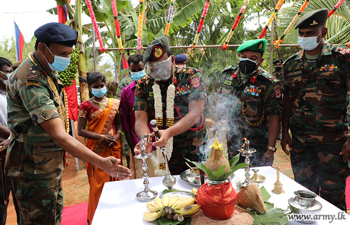 The compassionate thought of skilled Jaffna troops to provide decent shelters to homeless civilians resulted in the construction of two more new homes in Kollankaladdy and Uduvil South areas and vested them in beneficiaries with co-sponsorships, provided by both National Housing Development Authority and Ministry of Buddhasasana, Religious and Cultural Affairs.