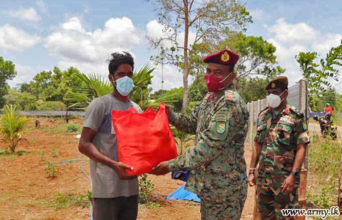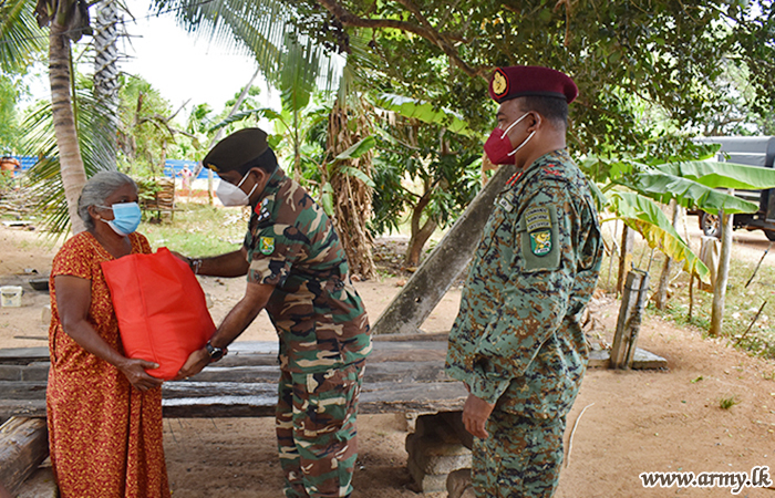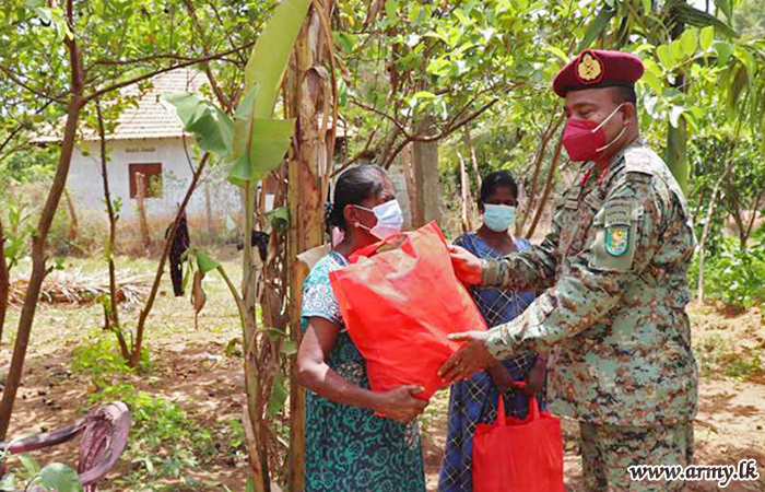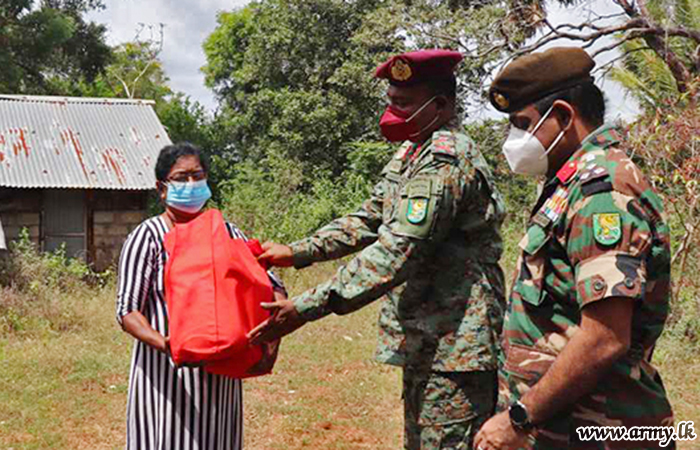 With the blessings of the Commander Security Forces-Wanni, Major General Hemantha Bandara, General Officer Commanding 65 Division, Major General Anil Samarasiri participated in the distribution project by taking those dry ration packets to their doorsteps.