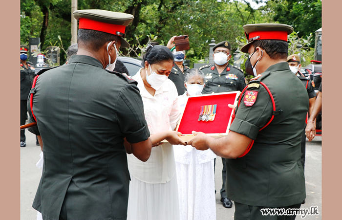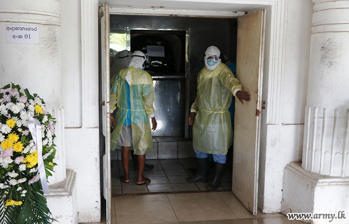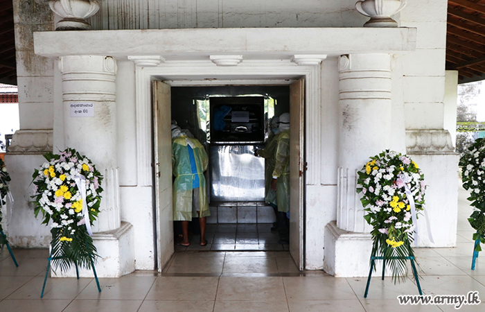 A restricted number of Officers and Other Ranks, including the Adjutant General, Major General Sanjaya Wanasinghe, who represented the Commander of the Army, Major General Jagath Kodithuwakku, Commander Security Forces - Jaffna and Colonel of the Regiment Sri Lanka Light Infantry (SLLI) Regiment, Senior Officers and Other Ranks, together with a few close family members attended the funeral at Borella.