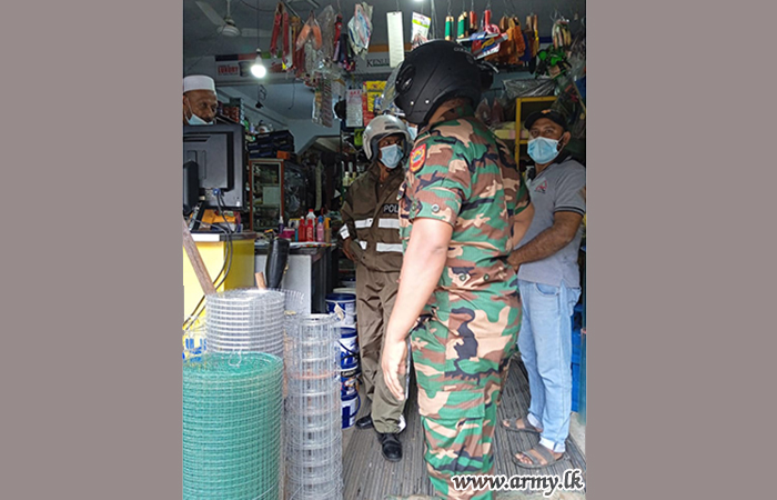 Those people as well as shops, etc disobeying health guidelines and flouting quarantine curfew restrictions were sternly warned during those operations. Commander, Security Forces Central Major General Vikum Liyanage, Major General Kithisiri Liyanage, General Officer Commanding 11 Division together with respective Brigade Commanders and Commanding Officers are closely supervising the troops during these operations.
