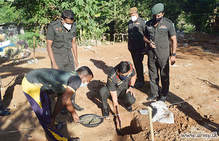 11 Sri Lanka Sinha Regiment (SLSR) troops under command to the 231 Brigade of the 23 Division of the Security Force HQ - East on Wednesday(1) laid the foundation stone to construct a new house for a needy family in Bakki Ella area in Batticaloa.