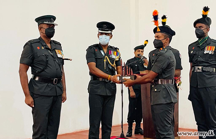 Recruit J.P.N.C Samarasooriya of the SLEME received the award for the Best Shooter, Recruit U.S Kumara of the SLEME, the award for the Best in Physical Fitness and the Recruit H.P.K.G.S Umayanga of the SLCMP carried away the award for the Best in Recruit. They accepted those awards from the day's Chief Guest. Officer instructors, instructors, and administrative staff members participated in the day’s ceremony, adhering to stipulated health guidelines.