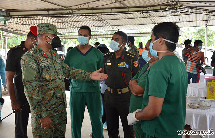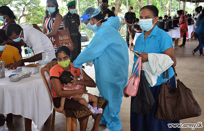 Major General Sujeewa Senerathyapa, Commander, Security Forces West supervised the troops during this vaccination programme, together with Major General Crishantha Gnanarathna, General Officer Commanding, 14 Division, Brigade Commanders and commanding officers.