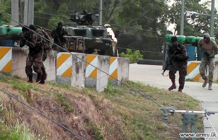 Tuesday (07) morning saw one more phase of the mock operation in the ongoing Field Training Exercise (FTX) 'Cormorant Strike -XI' where training troops liberated the Moragahakanda Dam under the East Asian Liberation Fighters' (ELF's) siege in a striking assault recapturing it after a fierce exchange of long range fire between Commando Brigade troops and those ELF terrorists.