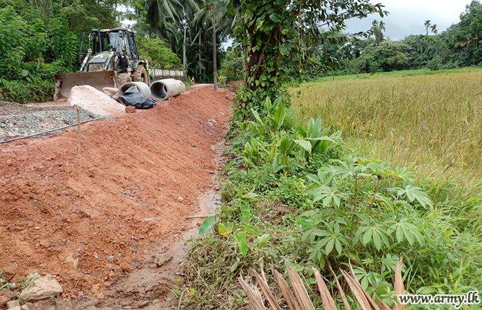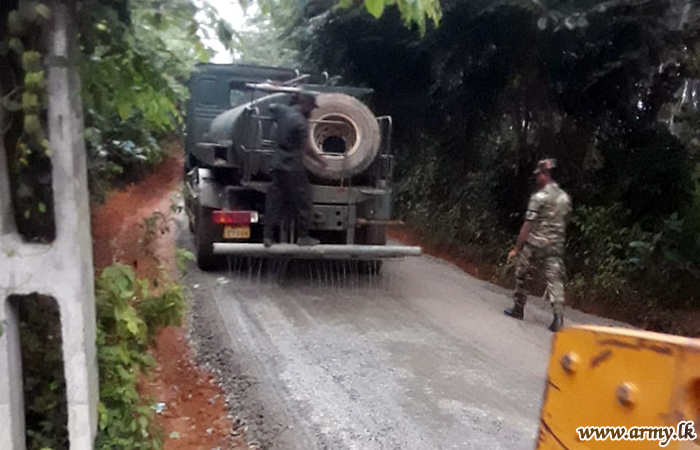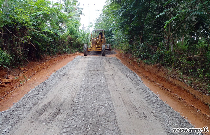 5 Field Engineer Regiment troops of the Army under the close supervision of the 5 SLE Commanding Officer Major L Rathnayaka and Plant Engineer Brigade Commander, Brigadier Anuruddha Senevirathna are currently continuing road renovation projects from Dehigasmulla to Helamba (1.4 km) and Kosgashandiya to Nelumuyana village (1 km) in close consultation with the Road Development Authority.