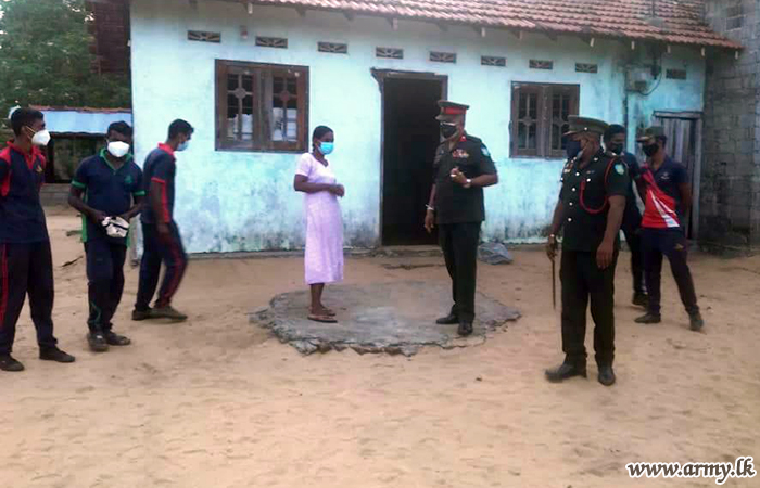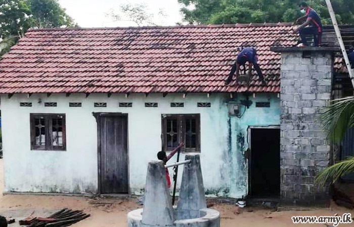 Responding to a humanitarian request made by Mrs Kaneshan Janeshvari, a resident in Vakarai area, Colonel Wasantha Hewage, Commander 233 Brigade took steps to renovate the partially-damaged roof of her house before starting the North East monsoon rainy season.