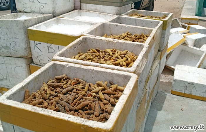 Troops of 7 Vijayabahu Infantry Regiment (VIR), together with Intelligence troops of the 54 Division HQ under Security Forces Wanni in Mannar apprehended 306 kg of illegal turmeric during a search at Mannar bridge roadblock on Wednesday (8).