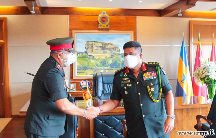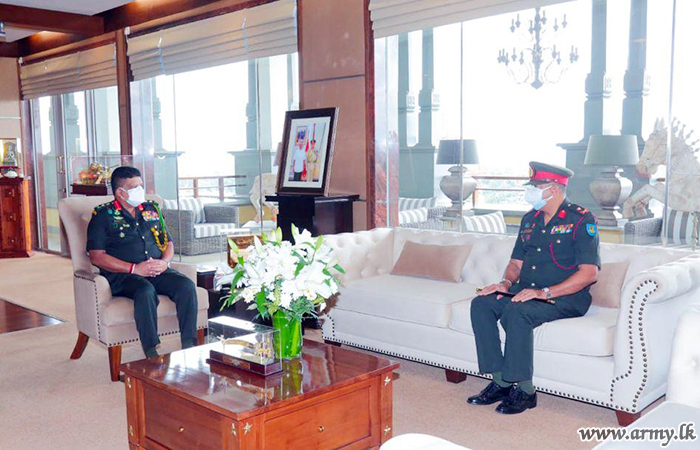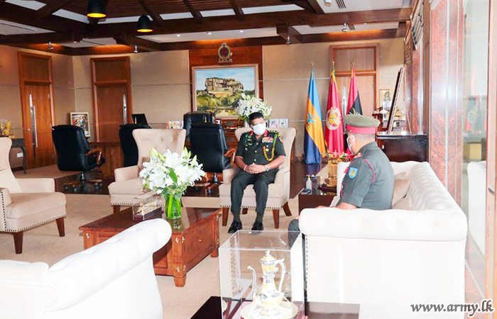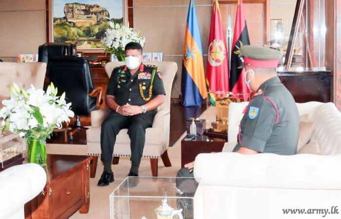 General Shavendra Silva during the brief interaction commended him for his sustained and committed service for more than three decades and recalled a few memories. He also spoke high of the outgoing Senior Officer's dedication for promotion of his SLAOC Regiment and went on to inquire into his future plans after retirement. The retiring Major General Shirantha Dissanayake as a senior officer served several key appointments in the Army and the Sri Lanka Army Ordnance Corps in particular during his career.
