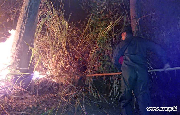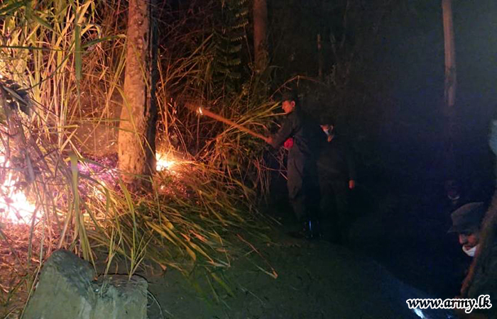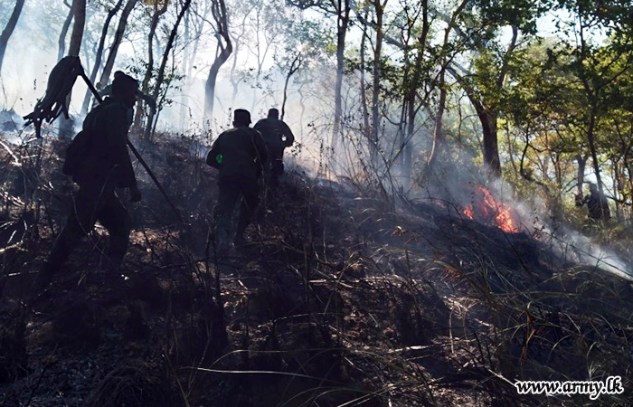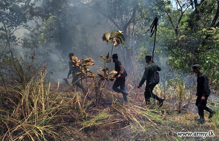 The complete control of this bush forest fire was made under the command of the Commander, 121 Brigade on the directions of Major General Prasanna Ranawaka, General Officer Commanding, 12 Division.