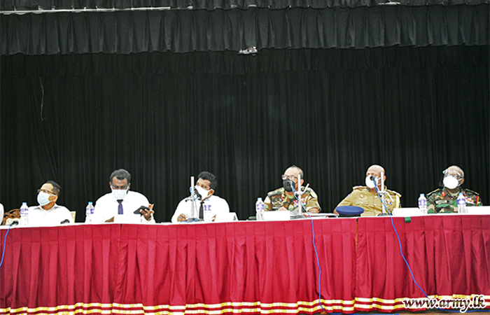 The Commander Security Forces- Wanni, Major General Hemantha Bandara as the Overall Coordinator for Prevention of COVID - 19 in Vavuniya district presided one more coordinating conference on the same issue on Monday (13) at the District Secretariat Office - Vavuniya where the District Secretary - Vavuniya Mr P A Sarathchandra, DIG Vavuniya Division, Regional Director of Health Services and other government officials.
