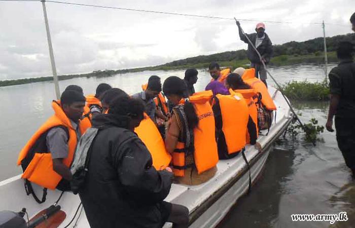 On the directions of Major General A.P de Z Wickremaratne, General Officer Commanding, 66 Division, troops sought the help of Navy boats for ferrying stranded civilians and reached the Police and fisheries societies to locate alternative temporary accommodations for affected civilians or help them return to their destinations.