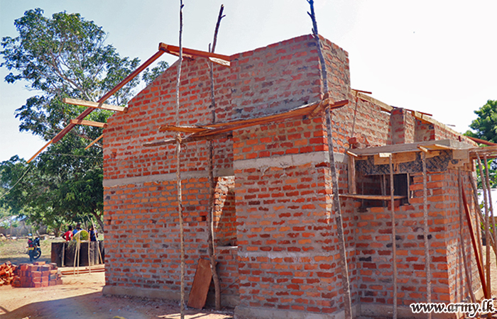 Construction of two more new houses, meant for homeless or less fortunate families in Sinnapandivirichchan village in Madu area as part of house construction for the needy under the Army community projects of the 65 Division HQ is now underway following state patronage given to 65 Division, 653 Brigade and 24 Gajaba Regiment troops of the Security Force HQ- Wanni.