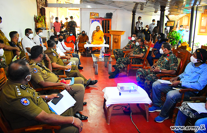 Major General Channa Weerasuriya, Commander Security Forces - East was among participants who attended a discussion on conduct of a land survey on Muhudu Maha Viharaya premises, together with the Chief Incumbent, Ven. Warakapola Indrasiri Thero, District Secretary Ampara, Mr. D.M.L Bandaranayake, General Officer Commanding 24 Division, Major General Chaminda Lamahewa, Commander 242 Brigade, Brigadier Chandika Peiris, Senior DIG Ampara and Batticaloa districts, Divisional Secretary of Pottuvil Division, Officials of the Presidential Task Force for Archaeological Heritage Management in the Eastern Province and officials of the Survey department at the temple compound on Thursday (16).