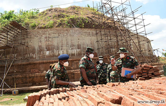 The Commander SF-E on the following day (17), visited Deegawapiya Stupa restoration site to review the progress of the project and gave necessary instructions for the Officers in-charge to expedite the progress before he went to Manikkamadu temple in Ampara where he received blessings from the Chief Incumbent, Ven. Ambagahapitiye Seelarathana Thero. Subsequently, the SF Commander visited the 241 Brigade at Akkaraipattu where he was warmly welcomed by Colonel Chandra Abeykoon, Commander 241 Brigade and attended the formalities including a troop address.
