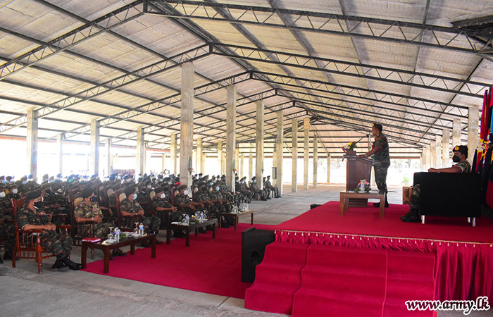 Subsequently, the Commander SF-E addressed the troops gathered at the Infantry Training Centre Minneriya where he focused on the importance of training in different professional aspects of the career and maintenance of the highest standards of discipline. The Commander further requested all the Officers and Other Ranks to refrain from irregularities, malfunctions and wrong practices to ensure the reputation of the Army is uplifted.