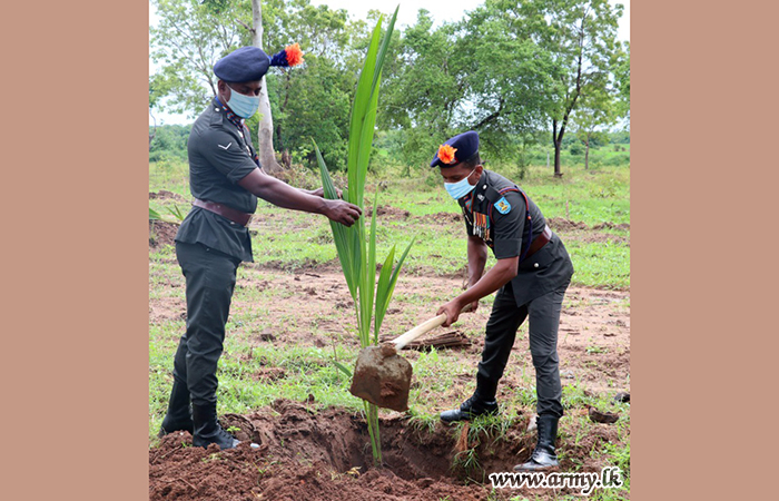 Commanding Officer 1 SLAGSC Lieutenant Colonel C.S Demuni together with all staff inaugurated the coconut cultivation project at 1SLAGSC detachment at Ella, Kantale on Sunday (19).
