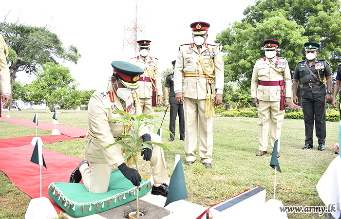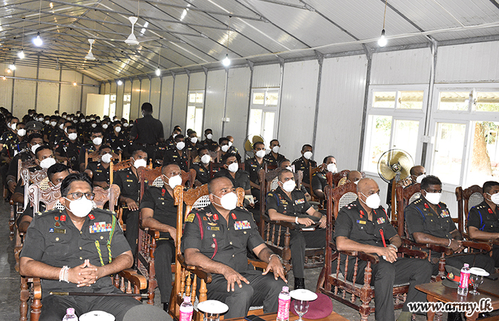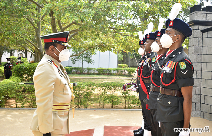During the visit to the 65 Division, the Commander, Security Force (Wanni) was warmly welcomed by the General Officer Commanding, 65 Division, Major General Anil Samarasiri before he was greeted to a Guard Turnout, presented by 19 SLLI troops at the entrance to the 65 Division HQ.