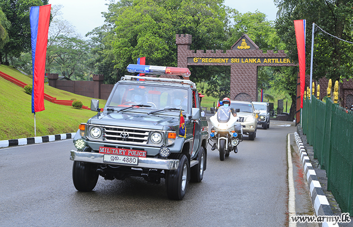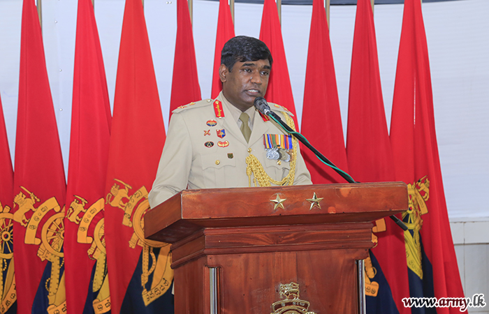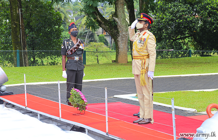 Featuring the traditional event, Major General Sampath Kotuwegoda at first offered floral tributes to the memory of fallen SLA War Heroes who made the supreme sacrifice in the name of our motherland. Then, he was invited to review the Guard Turnout, presented by troops at the Regimental Headquarters before he received the salute accorded in a Guard of Honour, mounted by Regimental troops in conformity with military traditions.