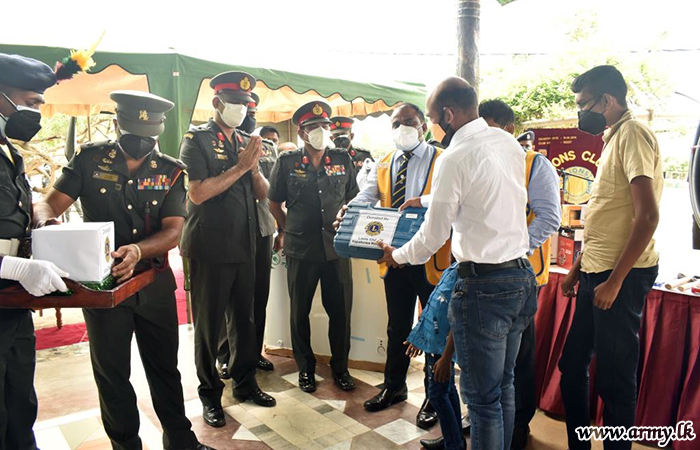 Major General Hemantha Bandara, Commander, Security Forces-Wanni on the eve of his exit from the Wanni command undertook a formal visit to the 54 Division HQ in Mannar on Tuesday (28) where he joined the distribution of 25 dry ration packets among needy families of former LTTE combatants and other deserving people in Mannar on Tuesday (28) following sponsorship, extended by a team of second year students at Malabe SLIT Institute.