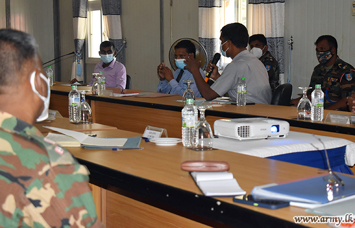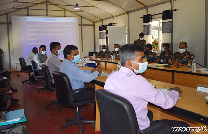 Mr Kokularajah Assistant Director, Disaster Management Centre, Mr Rajakopu, Deputy Director Irrigation Department, Kilinochchi, Mr Senthilkumaran Irrigation Engineer - Kilinochchi East, Mr S. Chandran, Administrative official at District Secretariat, Mr Thevarathan Deputy Commissioner of Agrarian Development and Major General Priyantha Jayawardane, Commander, 57 Division participated in the discussion.