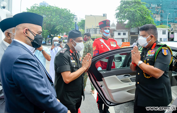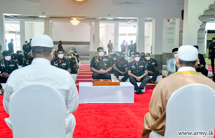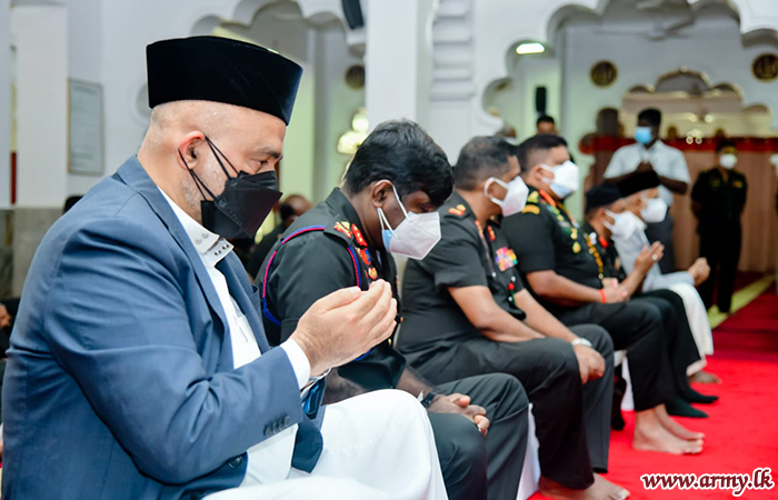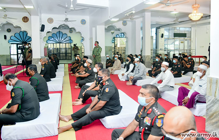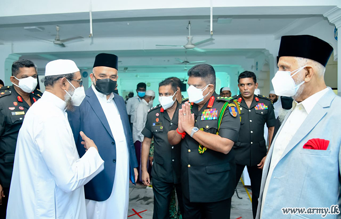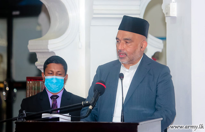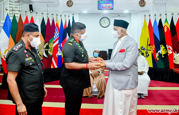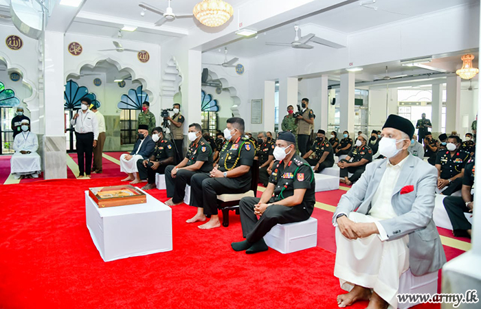 General Shavendra Silva, Chief of Defence Staff and Commander of the Army as the Chief Guest for the occasion was received on arrival by Brigadier Ashker Mutaliph, Chairman, Army Muslim Association, together with Al-Haj Mohammed Khaleel, Chairman, Secretary and members of the Board of Trustees at Colpetty Jummah Mosque.