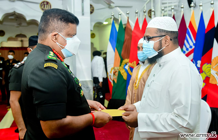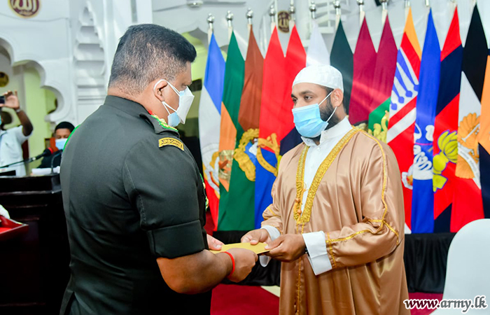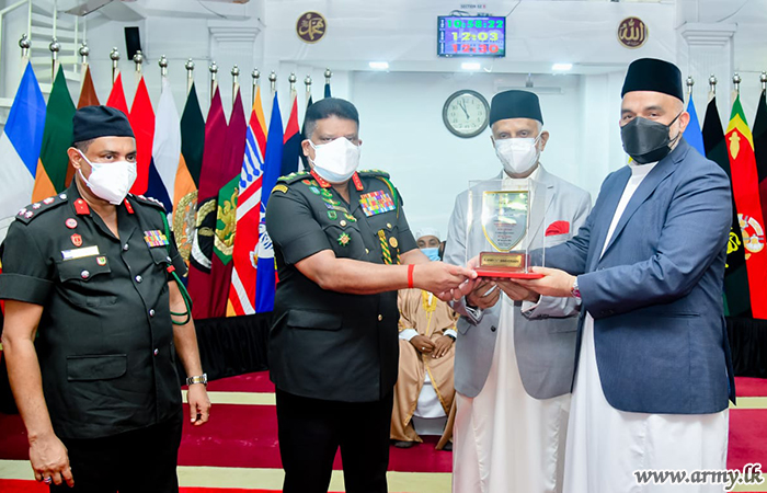On the same occasion, Al-Haj Kaleel Mohomad, Chairman, Board of Trustees in return presented a special memento to the day's Chief Guest, Commander of the Army as an appreciation on behalf of the Board of Trustees. Similarly, Al-Haj I.S Hameed, Secretary, Board of Trustees awarded a copy of the Holy Quran to the Commander of the Army as a token of goodwill.