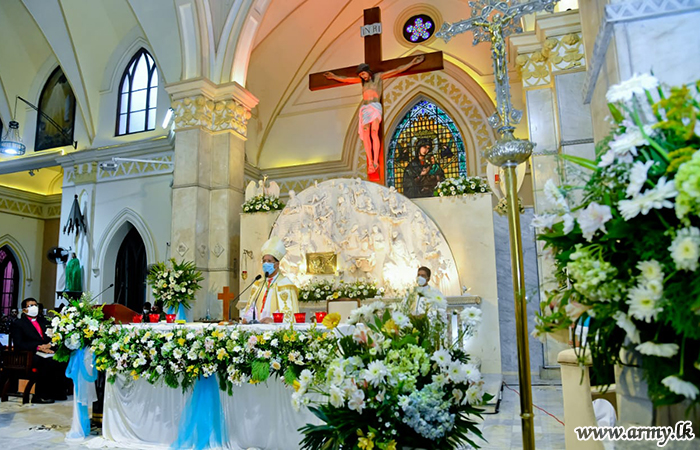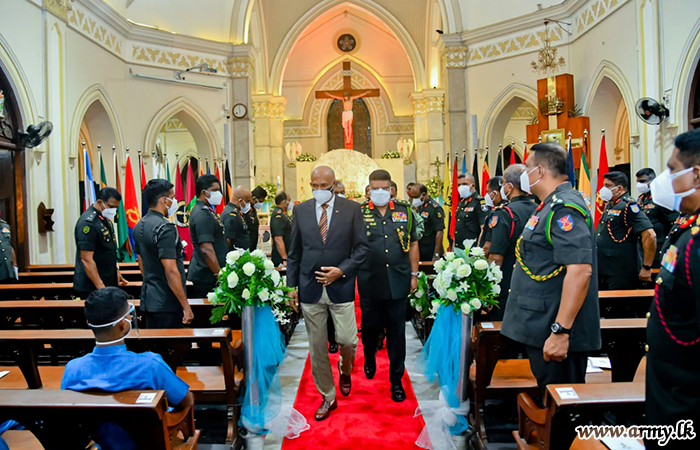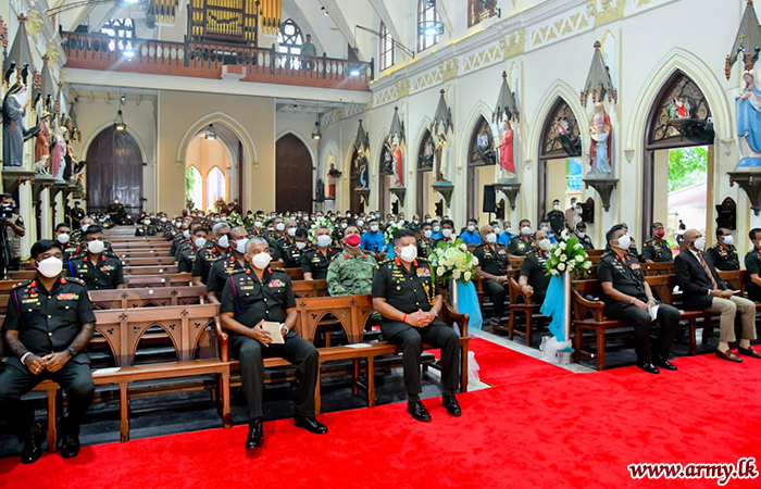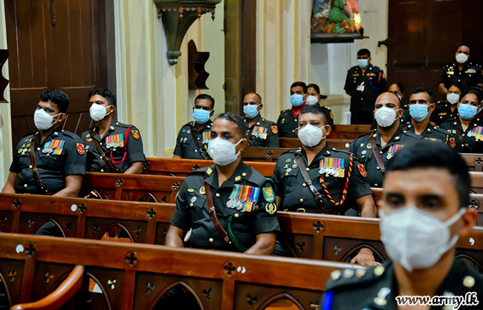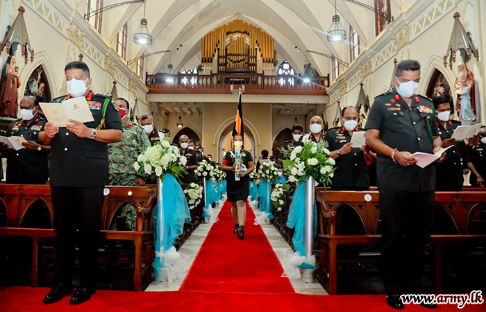 One more segment of the Army's multi-religious ceremonies to mark the 72nd Army anniversary programmes, the special Christian mass, held at All Saints’ Church, Borella this afternoon (30) invoked divine blessings for the forward-march of the Sri Lanka Army in a solemn ceremony, graced by General Shavendra Silva, Chief of Defence staff and Commander of the Army as the Chief Guest along with Army Officers.