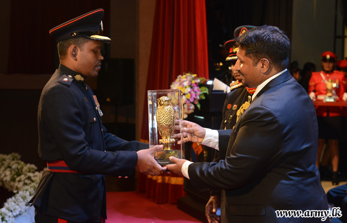 The Golden Owl Award for the most exceptional performance was awarded to Major L. L. I. S. Lokuliyanage (Army Wing) Commander (H) R. M. L. Rathnathilake, (Navy Wing) and Wing Commander W. U. S. De Silva (Air Wing) during the programme. The Golden Pen Award, generally presented for the Best Research Paper was received by Lieutenant Commander (ASW) S. K. Vidanage.