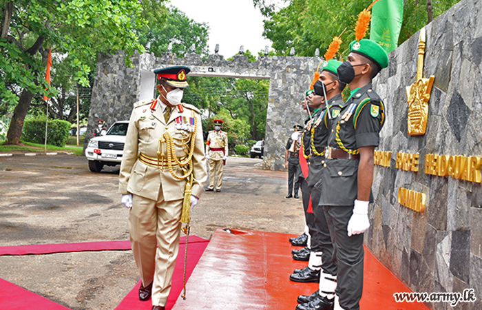 As the first segment of the day's formality, the newly-appointed Commander, Security Forces-Wanni was accorded a Guard Turnout at the entrance to the premises of the Headquarters Security Force (Wanni). Then, he paid tribute to fallen War Heroes by laying a floral wreath to the monument at the SFHQ premises. Later on, the ceremony was coloured after he was invited to review the Guard of Honour, presented by 9 GR troops of SFHQ-Wanni.