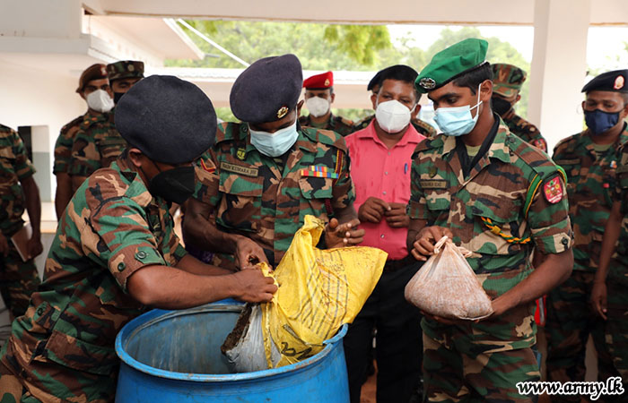 The Security Force Headquarters - Jaffna in collaboration with the District Director of Agriculture, Ms. A Sakeela Banu conducted one-day workshop on “Carbonic Fertilizer Making” on Tuesday (5) at the SFHQ-J premises in order to educate the troops on the use of chemicals, insecticides and herbicides in cultivations.