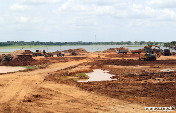Making one more significant contribution to the “Vari Saubhagya” programme of the government , troops have started the tank renovation projects in Mahaweli “L” region with the participation of 11 Field Sri Lanka Engineers. Plant works in those 4 renovation projects are supervised by the Plant Engineer Brigade.