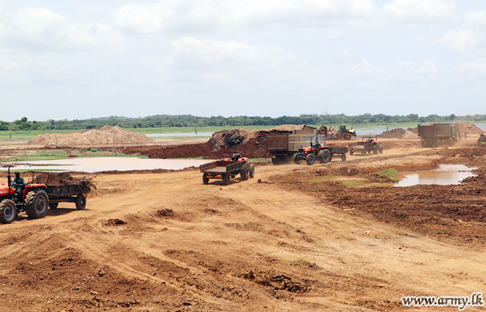 Sri Lanka Engineer troops hand in hand with the Mahaweli Authority have commenced desilting work in tank beds. These projects will benefit more than 800 farmers for harvesting covering more than 700 acres. These projects are funded by the Mahaweli Authority.