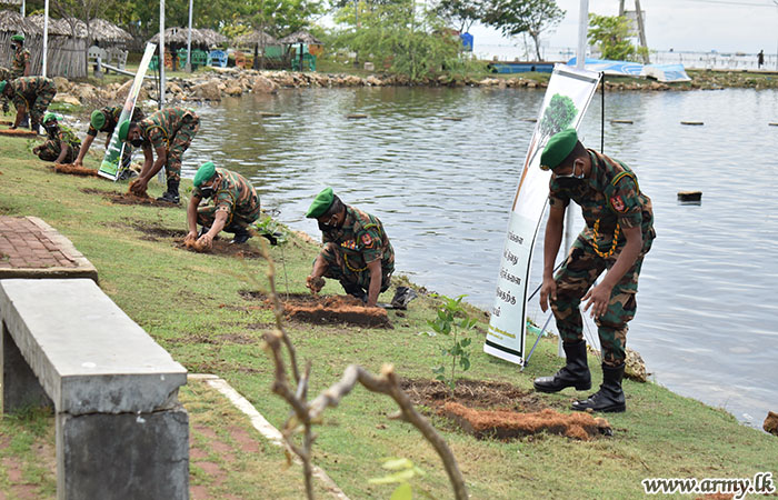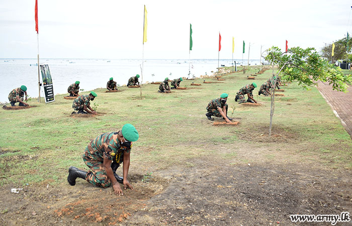 Accordingly, planting of 100 saplings along the Jaffna Karainagar road was launched by 14 Gajaba Regiment troops of the 512 Brigade. 100 Karanda and Kubuk saplings were planted under this programme with the intention of promoting awareness about the environment and the importance of eco-friendly projects.