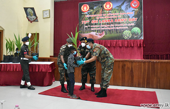 Meanwhile, 11 Sri Lanka Light Infantry troops of the 513 Brigade donated coconut and jak plants among civilians in Chullipuram village during an arrangement, held at the Victoria College premises.