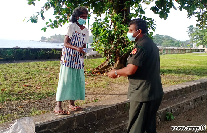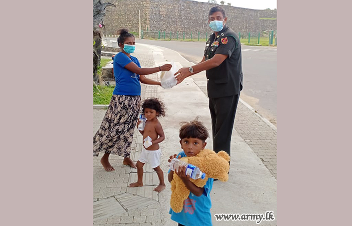 613 Brigade troops under the 61 Division of the Security Force HQ - West recently distributed packed meals and water bottles to the needy people in the heart of Galle town during lockdowns.