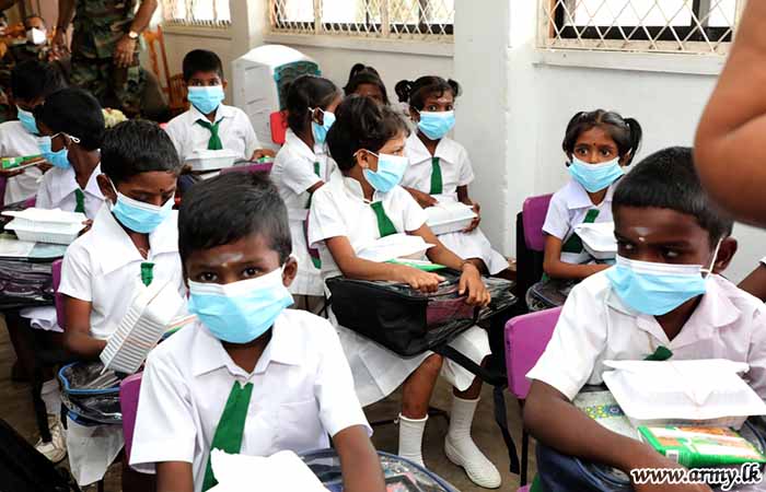 To coincide with the Army day, troops of the 522 Brigade under the 52 Division of the Security Force HQ - Jaffna, together with 15 Gajaba Regiment troops gifted stationery packs for 45 students learning at Ven. Madihe Pannaseeha Sinhala and Hindu Mixed School in Puttur, Jaffna as one more community project of the 52 Division.