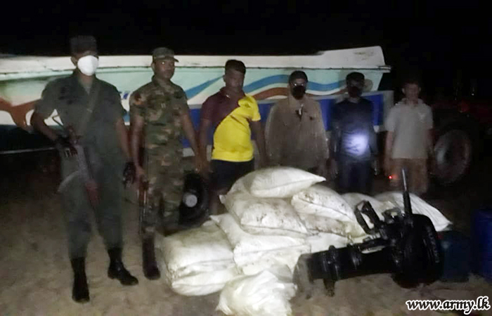 Army, Navy and Air Force troops throwing their full-weight behind the government’s all-out war against narcotics, drugs and smuggling of contraband have in the past few days recovered drugs, turmeric and other contraband from Mannar and elsewhere.