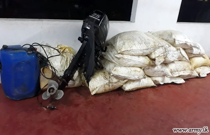 No suspects were arrested and the worth of the contraband exceeds Rs 2 million at market value. Troops detected a boat engine, one oil can and one motor bike and handed them over to the Police.
