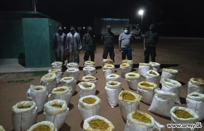 The stock was allegedly being taken to Eravur by those two suspects when the troops on suspicion searched the lorry around 1.30 a.m. on Monday (11). Both suspects and the contraband were handed over to Mannar Police for onward investigations.
