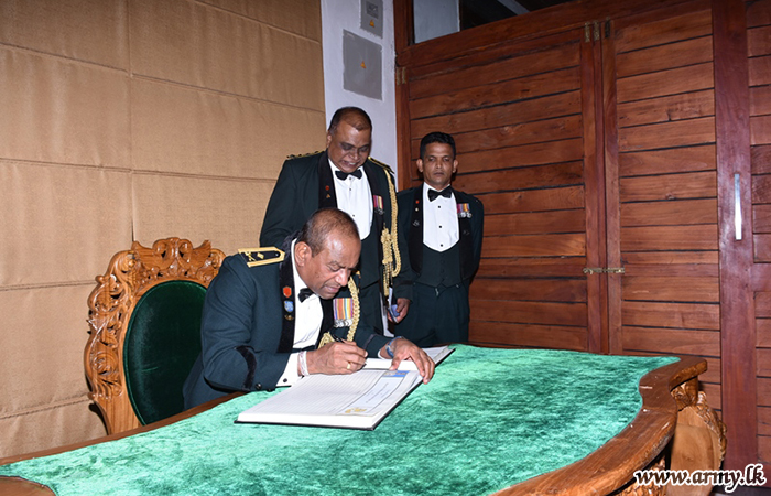 After the parade, the Colonel of the Regiment paid floral tributes to the SLSR War Heroes’ monument and joined All Ranks refreshments at the Warrant Officers' and Sergeants' Mess where he shared a few thoughts with the attendees. He also signed a few documents in respect of his relinquishment of the appointment in the office.