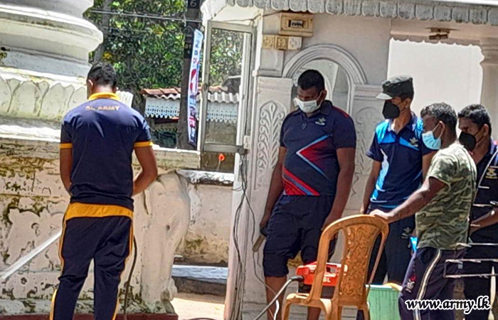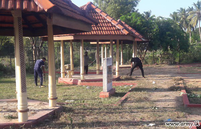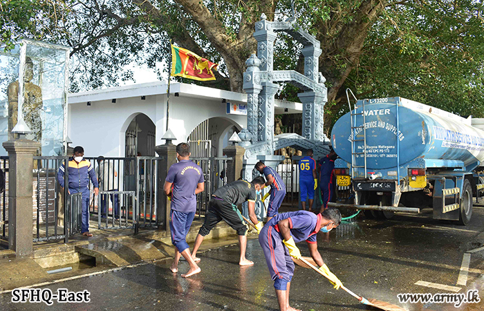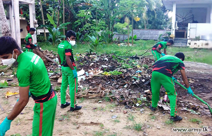 The Commanding Officer afterwards joined cleaning the Sirinanda Temple in Keselwatta with the participation of all Officers, Other Ranks and Civil staff of the 1 Sri Lanka Army Pioneer Corps.