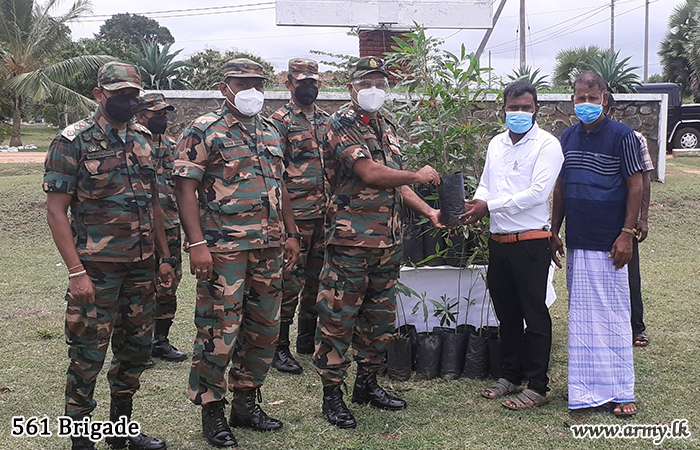Similarly, the 561 Brigade Headquarters of the SFHQ-Wanni launched a project to distribute 250 "Mee" saplings among all state institutions under the Kanagarayankulam Grama Niladhari Division on the instructions of the Commander 561 Brigade, Colonel G.P.P Kulathilake.
