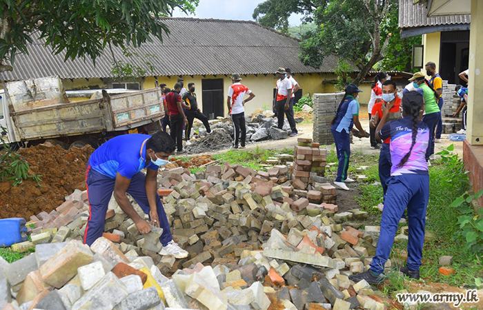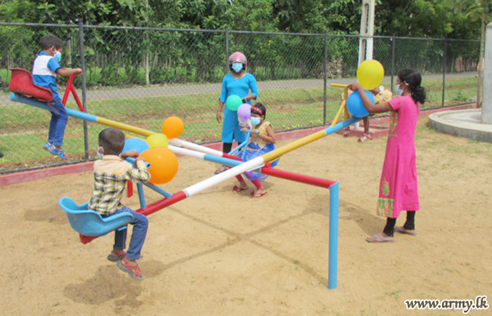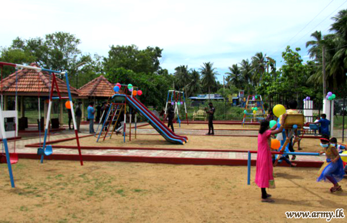 Meanwhile, troops of the 57 Division of the Security Force HQ - Mullaittvu on account of the Army Day (10 October) renovated the children's park at Visuwamadu and renovated the main entrance of the Visuwamadu Maha Vidyalaya as a community project.