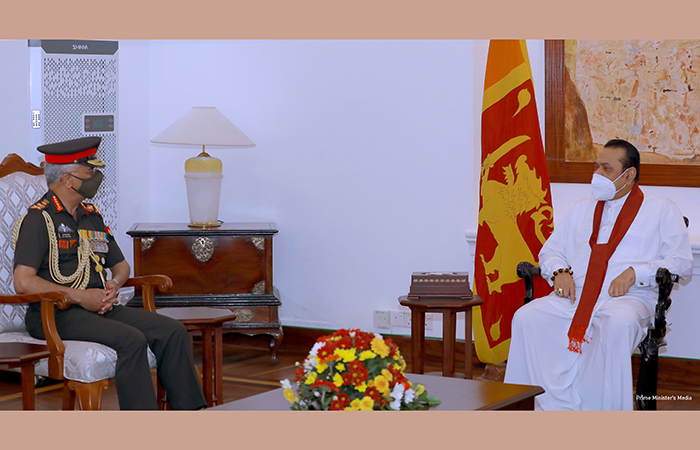 The Chief of the Army Staff of India, General Manoj Mukund Naravane, currently in Sri Lanka on Wednesday (13) paid courtesies to Hon Prime Minister Mahinda Rajapaksa at Temple Trees as one more segment of the itinerary in Sri Lanka.