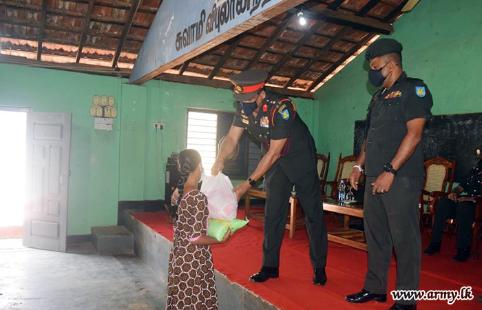 On the directions of the General Officer Commanding, 23 Division, Major General Nalin Koswatte and under the supervision of the Commander, 231 Brigade, Brigadier W.J.N.K.D Bandara organized a programme to distribute 100 dry ration packs, each worth of Rs. 6000.00, among 100 needy families in Batticaloa district on 10 Oct 2021 in connection with the Army Anniversary.