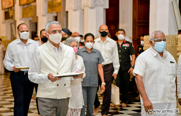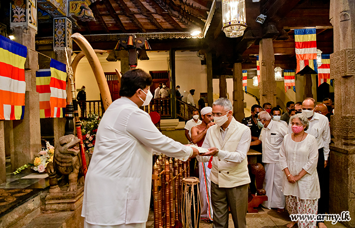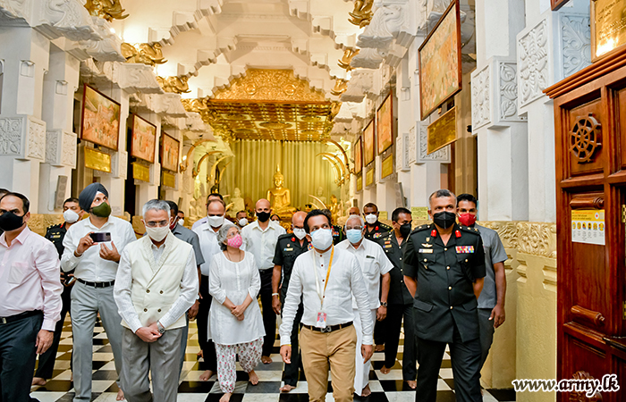 General Manoj Mukund Naravane, the Indian Army’s Chief of the Army Staff, together with his touring delegation on Thursday (14) evening paid obeisance to the sacred Sri Dalada Maligawa, Temple of Tooth in Kandy.