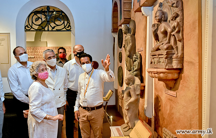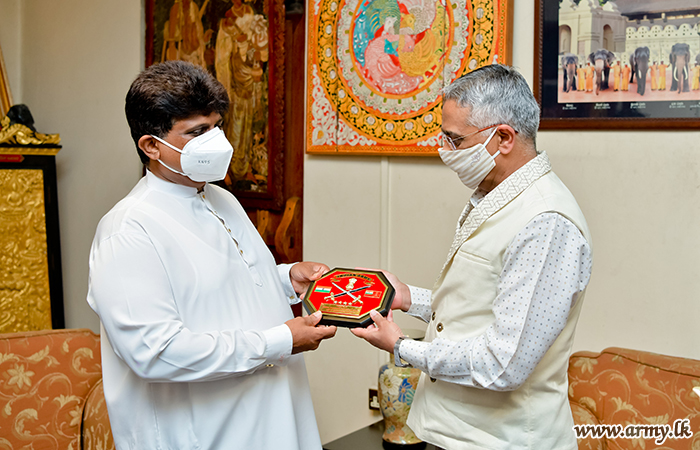 At the entrance to the Dalada Maligawa chambers, Mr Pradeep Nilanga Dela Bandara, Diyawadana Nilame, the lay custodian of the temple offering a tray of jasmine received the Indian Army Chief and the delegation before they were taken to the upper chamber for observances.